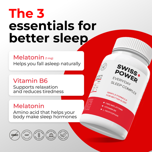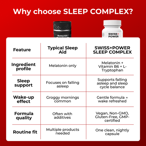 - Melatonin (1 mg) — supports natural sleep rhythm