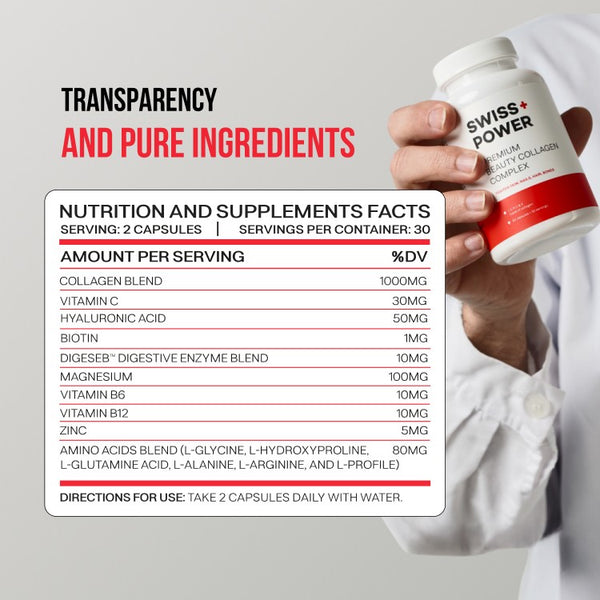 This comprehensive collagen complex combines 5 collagen types with scientifically-backed vitamins and minerals that work synergistically for optimal skin, hair, and nail health.