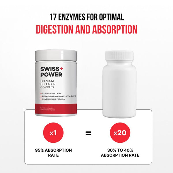 Our Enhanced absorption system (EAS™) ensures maximum bioavailability. The proprietary DigeSEB™ enzyme blend helps your body absorb more collagen with a lower dosage.